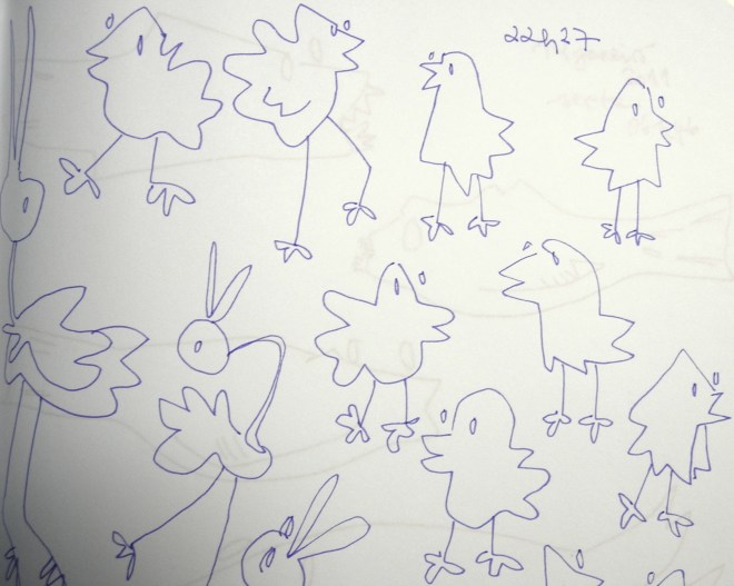 variam muito de forma, cor e comportamento: há as pequenas e iniciantes ainda, que piam baixinho, mas sem parar – meio tronchinhas, não controlam todos os movimentos; as maiores são mais esbeltas, já muito hábeis na técnica de voar, sabem a hora de gritar, espiar de longe e caçar.