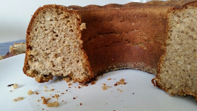 Adicionei noz moscada, gergelim, canela, cravo e cardamomo para dar um gostinho de especiarias. Assou por 1 hora e 15 minutos a 180 graus. Ficou assim: